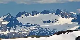 Hagan Mountain is a 7,080-foot (2,160-metre) multi-peak mountain located in the North Cascades, in Whatcom County of Washington state.[2] It is situated 12 mi (19 km) north of Marblemount, within North Cascades National Park. Its nearest higher peak is Mount Blum, 1.81 mi (2.91 km) to the north, with Bacon Peak 4.45 mi (7.16 km) to the south.[1] Precipitation runoff and glacier meltwater from the large Hagan Glacier and smaller Hidden Creek Glacier on the mountain drains into tributaries of the Skagit River.