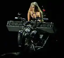 The song was also included in the setlist of her Born This Way Ball tour (2012–2013), where she played the song on a keyboard that was installed on a motorbike.[52] To Kwaak Je-yup of The Korea Times was positive about the performance of the song during the tour saying that, "The highlight of the night was her first slow jam 'Hair,' which she introduced as her favorite track on the 'Born This Way' album. (...) She flubbed her line once and admitted it right away — 'I'm getting too excited (that) I forgot my lines,' she said — but the moment made the experience personal."[53] On the second night of Gaga's show in the Philippines, she addressed the protests by Christian groups against her performances in the country, directly before performing "Hair". While playing the piano she stated that she is aware of the issues around her image and music, she emphasized that she respects all kinds of religion, people and culture – including Filipino culture.[54] She also said that she respects that everyone is entitled to their own opinion, but stressed "What I don’t respect is homophobia and hatred…I reject intolerance to the gay community."[54] This drew cheers from the audience. She went on to say that she is aware some are using her name to spread hatred but intended to counter this by continuing to spread "positivity" in her own way.[54]