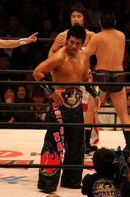 - GHC Junior Heavyweight Tag Team Championship (5 times) – with Kenoh (2), Hitoshi Kumano (1), Daisuke Harada (1) and Atsushi Kotoge (1)[62][70]