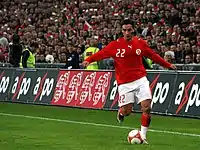On 11 June 2008, he scored the opening goal in the 32nd minute of Switzerland's second Euro 2008 Group A match against Turkey, giving them a 1–0 lead and he refused to celebrate after the goal as a respect for his family's birth country. However, he missed another chance shortly afterward as Turkey scored two second-half goals, resulting in Switzerland's becoming the first team to be mathematically eliminated from their own tournament within five days of its beginning.[19] However, in Switzerland's final group match against Portugal on 15 June, Yakin added two second-half goals, the second a penalty kick, to secure their first ever win at the UEFA European Championship, 2–0.[20] Yakin finished the tournament as joint-second highest goalscorer with Lukas Podolski, Roman Pavlyuchenko, and Semih Şentürk with three goals each, behind David Villa's four goals.