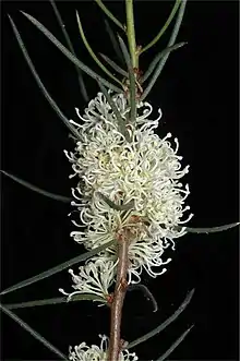 Hakea candolleana is a shrub in the family Proteaceae native to areas along the west coast in the Wheatbelt and Mid West regions of Western Australia.[2] A cream-white winter flowering species, useful as a garden ground cover.