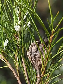 Hakea ochroptera is a species of flowering plant in the family Proteaceae and is endemic to a restricted area of New South Wales. It is a shrub with long, needle-shaped leaves and an abundance of cream-white flowers in spring.