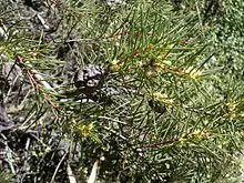 Hakea pachyphylla is a flowering plant in the family Proteaceae and is endemic to the upper Blue Mountains in New South Wales. It is a small shrub with stiff, needle-shaped leaves and clusters of yellow flowers. Formerly thought to be a Blue Mountains form of Hakea propinqua.