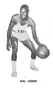 With the Thundering Herd, Greer scored 1,377 points with a .545 field goal percentage, setting a Marshall record. In 1956, Marshall won the Mid-American Conference championship,[4] and made their first NCAA men's basketball tournament appearance.[5] Greer was named All-Mid-American Conference in 1957 and 1958. He was named an All-American in 1958 as well.[4] Greer finished his Marshall career averaging 19.4 points per game and 10.8 rebounds per game.[6] In 1958, his senior year, Greer averaged 23.6 points per game.[7] Greer also played for the school's baseball team in his sophomore year as a first baseman.[4][5]