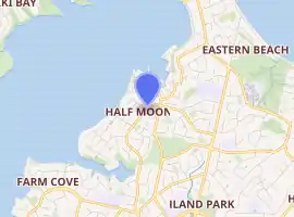 - "Statistical area 1 dataset for 2018 Census". Statistics New Zealand. March 2020. Half Moon Bay West (147800), Half Moon Bay North East (148800) and Half Moon Bay South East (149300). 2018 Census place summary: Half Moon Bay West 2018 Census place summary: Half Moon Bay North East 2018 Census place summary: Half Moon Bay South East