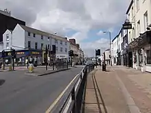 The street formed part of the Great North Road, and then the A1 road, until the A1(M) motorway was constructed as a by-pass. It continues the route of the town's High Street, and maintains the same width, and although it lacks any grand civic or commercial buildings, it does retain several Georgian houses. Doncaster Metropolitan Borough Council describes the street as a "secondary retail area" with a "down at heel" appearance,[2] this often being ascribed to the Frenchgate Shopping Centre taking business away from less central areas of the town.[4] In 2020, the council made the street one-way, in an attempt to make it more pedestrian-friendly.[5]