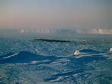 Halley Bay was a location on the fast ice on the north-western margin of the Brunt Ice Shelf in Coats Land, Antarctica. The series of British Halley Research Stations were constructed near here and named after the bay. The original ice bay was transitory and no longer exists although other bays in the same area keep reforming and breaking off as the shelf calves into icebergs. The location contains a 177 ha site which has been designated an Important Bird Area (IBA) by BirdLife International because it supported a breeding colony of about 22,500 emperor penguins (estimated from 2009 satellite imagery) [1] although as of 2019 the colony has dispersed due to repeated failure of the sea ice.[2] In addition to the recent seasonal failures of ice the Brunt Ice shelf is approaching a large calving event which will reshape this section of coast and leave the original location of Halley Bay many Km out at sea.[3]