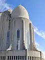 It took 41 years to build the church: construction started in 1945 and ended in 1986, but the landmark tower was completed long before the whole church was finished. The crypt beneath the choir was consecrated in 1948, the steeple and wings were completed in 1974,[5] and the nave was consecrated in 1986.[1] At the time of construction, the building was criticized as too old-fashioned and as a blend of different architectural styles.[6] The church was originally intended to be less tall, but the leaders of the Church of Iceland wanted a large spire so as to outshine Landakotskirkja (Landakot's Church), which was the cathedral of the Catholic Church in Iceland.[6]