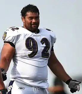 Etuini Haloti Ngata (Tongan pronunciation: [ˈŋata]; born January 21, 1984) is a former American football defensive tackle. He played college football for the University of Oregon and earned consensus All-American honors. Ngata was drafted by the Baltimore Ravens in the first round of the 2006 NFL Draft, and was selected for the Pro Bowl five times. Ngata played for the Ravens for nine seasons before being traded to the Detroit Lions before the 2015 NFL season. Ngata was also a member of the Philadelphia Eagles for one season in 2018 before retiring.
