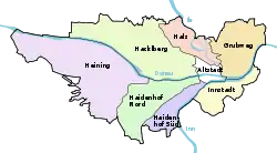 As a result of the Gemeindegebietsreform (territorial reform), which came into effect on July 1, 1972, the former market of Hals became a neighborhood of Passau,[2] although there would be a plebiscite, only 13 of the 113 electors supported incorporation into Passau, while the larger share supported a merger with Grubweg. The current neighborhood has a population of 1,695 residents (12/31/2005)