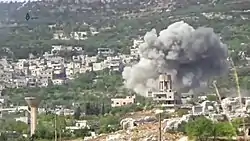 Airstrikes by the government and its allies continued over the following days. On 25 September, Syria Civil Defence claimed that airstrikes resulted in over 40 deaths in Idlib.[44] On 26 September, there were reports of a fifth hospital in rebel territory targeted, the Sham 4 hospital in Kafr Nabl, Idlib.[45] On 27 September, another 43 deaths were reported in towns in Idlib, including Khan Shaykhun and Jisr al-Shughur, as a result of the campaign.[46] On the same day, Russian Defense Ministry's spokesman Major General Igor Konashenkov stated that 5 HTS commanders and 32 militants were killed in a special operation executed by the Russian SOF in coordination with the Russian Air Force which delivered a surgical missile strike on the location of the meeting attended by the HTS field commanders south of Idlib. The commanders were believed to be behind an attack on the group of Russian military police back on September 18. By 28 September, Syria Civial Defence had reported more than 152 civilian dead in the bombing campaign and that six hospitals had now been targeted, displacing urban residents into rural areas.[47] The bombing campaign was halted on the night of 29 September.[18]