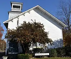 The Hamburg Presbyterian Church is a historic church at the junction of Cherry and Lincoln Streets in Hamburg, Arkansas. The building, a single story wood-frame structure, has an unusual construction history. It was built in 1871, and was apparently stylistically decorated in Stick Style, although no historic photos of the building have been found. In c. 1920 the building underwent a series of alterations, including relocation or reconstruction of its tower to its present location, when it had originally been at the entrance. It is at this time that the cornice bracketing and half-timbering was added, giving the building a Craftsman style appearance.[2]