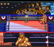 Exhibition mode allows up to four players to compete either against each other in singles match or in tag team format. There is also a round-robin tournament with six wrestlers competing to become the league champion. A standard tournament for up to eight players is also used as an alternative to the round-robin format. The Top Ranking Match puts the players against the other eleven wrestlers in an arcade-like tournament to become the champion. The game is divided into three screens at times. The middle part shows the current action happening in the ring while the top and bottom parts of the screen are used for close-ups of action sequences such as power moves, illegal moves and finishing maneuvers.