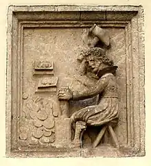 A trussell for use with a pile in the production of hammered coins as shown by the moneyer at work.