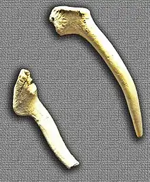 It is thought that indirect percussion with a pointer appears in the Upper Palaeolithic, and it coexists with direct percussion. In any case, the scars of these techniques are impossible to distinguish, except in exceptional cases. In fact, it is difficult to identify the bone pointers in the excavations, since they hardly have characteristic marks, that is, different from a percussion with any other purpose. Proposed examples are that of the Fageolet cave (Dordogne), dated in the Gravettian, those of Villevallier and Armeau (Yonne), both Neolithic, and those of Spiennes (Belgium), from the same period.[13]