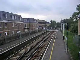 The Shepperton branch opened to passengers on 1 November 1864. The original scheme intended that it would extend to a terminus on the Middlesex bank of the River Thames just east of Chertsey Bridge, but this plan was abandoned in 1862.[3] The curve linking Fulwell and Teddington initially opened only to freight on 1 July 1894 and then carried passengers on 1 June 1901 as the replacement principal route, but selected for peak hours only by British Rail later. The line was electrified on 30 January 1916.
