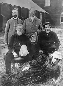 Mahupuku (seated, right) with Canon Samuel Williams (seated, left) and group at Papawai