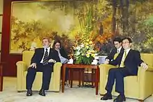 Han Zheng[lower-alpha 1] (Chinese: 韩正; pinyin: Hán Zhèng; born 22 April 1954) is a Chinese politician serving as the Senior Vice Premier of the State Council and Politburo Standing Committee member of the Chinese Communist Party (CCP). He has also been leader of the Central Leading Group on Hong Kong and Macau Affairs since April 2018. Han served as Mayor of Shanghai between 2003 and 2012. In November 2012, he was promoted to become the Party Secretary of Shanghai, the top political post in the city, and also gained a seat on the CCP Politburo.[1] Han was once considered a member of the Shanghai clique, headed by former Party General Secretary Jiang Zemin.
