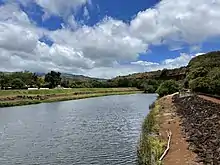 The Hanapepe River is a river on the Hawaiian island of Kauai. It begins at the confluence of the Kō'ula River with the Manuahi Stream and flows generally south, with a total length of 24.2 km (15.0 mi)[2] to its mouth at Hanapepe and Eleele in the Pacific Ocean.[3] The watershed covers an area of 27.7 square miles, draining roughly a twentieth of the island.[4] The name Hanapepe translates to "crushed bay," which may refer to landslides in the area.[5][6]