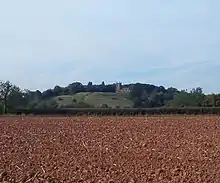 Although some flint tools of indeterminate date have been found in the parish the main feature surviving from prehistory is the Iron Age hill fort on Church Hill.[1] Remains of the embankments and ditch are well preserved on the north side of the hill, and are more faintly discernible on the south and east side. Most of the hill top area has been used as a burial ground from earliest Christian times, but in an area outside the burial ground a trial excavation was conducted a few years ago by the Worcestershire Archeology Service, and clear signs of iron-age settlement were found. That occupation on the hill top continued through the Roman period is shown by the discovery of Roman coins, and it can be conjectured that in the 4th century AD, when the Roman Empire converted to Christianity, a church was first built here.
