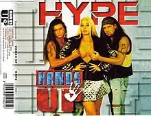"Hands Up" is a 1995 song by Norwegian Eurodance group Hype, consisting of singer Linda Johansen and two rappers.[1] It is a cover of the 1981-single by the French pop music duo Ottawan and peaked at number 10 in Norway.[2] In Finland, it was a even bigger hit, reaching number 7. A controversial music video featuring frequent nudity with brief modesty bars was also made for the song. Swedish band Army of Lovers had a number 44 hit in Sweden in 2001 with their cover version.[3]
