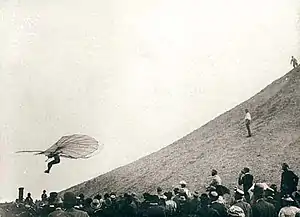 - "1908 hang glider in Breslau territory with pilot hung by his left foot, a device used through 1900s (decade) up to today for natural bodily commute". Archived from the original on 1 January 2016. Retrieved 30 April 2017.