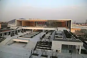 Xiaoshan railway station (simplified Chinese: 萧山站; traditional Chinese: 蕭山站; pinyin: Xiāoshān zhàn) opened in 1992.[1] Xiaoshan station was renamed Hangzhou South station on January 1, 2010.[2] The station closed for renovation work on July 1, 2013 when Hangzhou East railway station opened. The metro station on the newly built Metro Line 5, which connects the railway station with Xiaoshan District, downtown, northern and western Hangzhou, opened on June 30, 2020. The rebuilt railway station reopened on July 1, 2020.[3]