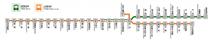 - Uemachi Line (Tennoji eki-mae - Sumiyoshikoen) 4.6 km