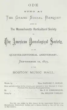 This article incorporates text from this source, which is in the public domain: American Unitarian Association (1912). "Hannah Flagg Gould, by Oscar Fay Adams". The Unitarian Register (Public domain ed.). American Unitarian Association.