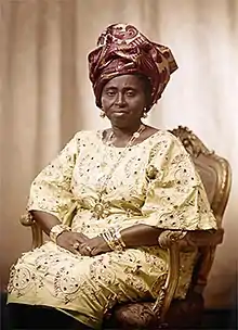 Born to a modest family in the small Ikenne community of Ogun State in Nigeria, she attended Methodist Girls' High School in Lagos.[2] She was married to politician Obafemi Awolowo from 26 December 1937 to his death in 1987.[3] He famously referred to her as his "jewel of inestimable value". She was also a successful businesswoman[4] and astute politician. She played an active role in the politics of Western Nigeria. She stood in for her husband in the alliance formed between the NCNC and the AG, called the United Progressive Grand Alliance (UPGA), while he was tried and in jail.