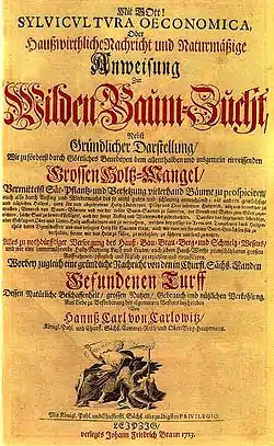 Hans Carl von Carlowitz, originally Hannß Carl von Carlowitz (24 December 1645 - 3 March 1714), was a Saxon tax accountant and mining administrator. His book Sylvicultura oeconomica, oder haußwirthliche Nachricht und Naturmäßige Anweisung zur wilden Baum-Zucht (1713) was the first comprehensive treatise about forestry. He is considered to be the father of sustainable yield forestry.