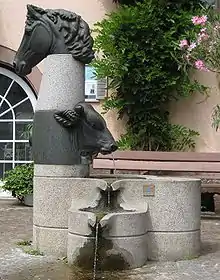 Since 1959 he has lived and worked in Karlsruhe. His most important works are the sculpture at the Elisabeth Selbert school in Karlsruhe and the Rappenbrunnen in Karlsruhe-Durlach. The sculpture at the Elisabeth Selbert school has a height of 3.10m (10 feet 2 inches) and is made of granite with a marmor sculpture. The Rappenbrunnen is also made of granite with a horse and bull head made of diabase which symbolize the names of the two crossing streets on which it has been erected.