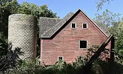 Hans J. Jorgensen Barn is a historic building located in Kimballton, Iowa, United States. Its significance is derived from its association with Jorgensen, who was the instrumental in the founding and early growth of the town, a Danish immigrant community.[2] The barn is a pyramidal roof variant of the Square Hipped Roof Barn. Built in 1908, it is the only barn of this type that remains in the Danish Settlement area.[2] The concrete blocks used for the foundation and for the adjacent silo, which a part of this historic nomination, were locally produced in a Danish-influenced industry. The two-story heavy-timber structure utilized mortise and tenon construction for the animal stalls and the supports for the hay loft. The barn was listed on the National Register of Historic Places in 1991.[1]