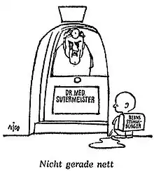 - Sutermeister wrote later on about the polemic issue: Commentary about Medizin und Presse „von H. M. Sutermeister, Ars Medici, 11, 749 (1963).“ In: Ars medici: Monatsschrift für Allgemeinmedizin. Band 54, 1964: „Der Autor ist mir bekannt; ich schätze ihn als originellen Geist, ferner als «schreibsam». Leider ist er idealistisch und gibt sich Illusionen hin. Die von Wüscher befürwortete systematische ärztliche «Gegenaufklärung» (page 755) zur Bekämpfung schädlicher medizinischer Falschmeldungen und «Zeitungsenten» ist illusorisch,“ as the commentary says (in German).