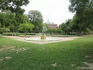 The Artemis Fountain, from 1934, has a central location in the park. It was created by Johannes Bjerg and features a bronze sculpture of Artemis riding a jumping red deer stag.[3]