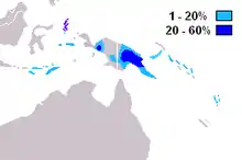 One study has reported finding haplogroup S-M230 in: 52% (16/31) of a sample from the Papua New Guinea (PNG) Highlands; 21% (7/34) of a sample from the Moluccas; 16% (5/31) of a sample from the Papua New Guinea coast; 12.5% (2/16) of a sample of Tolai from New Britain; 10% (3/31) of a sample from Nusa Tenggara, and; 2% (2/89) of a sample from the West New Guinea lowlands/coast.(Kayser 2003 Cox 2006)