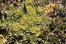 Haplosciadium abyssinicum is a species of flowering plant in the family Apiaceae (Umbelliferae); it is the only member of the genus Haplosciadium. It is a flat rosette plant endemic to the Afro-alpine zones on East African mountains, occurring on moist valley bottoms above 3,500 metres (11,500 ft).[1][2] It engages in geocarpy as an adaptation to living on frost-heaved soils.