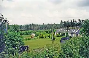 The station was opened as Douglas on 1 April 1864 by the Caledonian Railway. It was a terminus until Muirkirk opened to the south. Although it was initially named Douglas, the village of the same name was 3 miles to the southwest. It had two signal boxes, one to the east end of the eastbound platform and the other behind the middle of the westbound platform. On the south side was the goods yard. The station's name was changed to Happendon on 1 April 1931. The station closed on 5 October 1964.[1] The second signal box was demolished in the 1960s. The platforms still survive, albeit in an overgrown state, and the railway cottages survive as houses.[2]