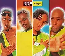 "Happy" was recorded by British R&B group MN8.[6][7][8][9][10][11] It was released in July 1995 as the third single from their debut album, To the Next Level and peaked at number 8 on the UK Singles Chart,[12] 33 in Belgium,[13][14][15] number 1 in France[16] and number 11 in New Zealand.[17][18][19][20]