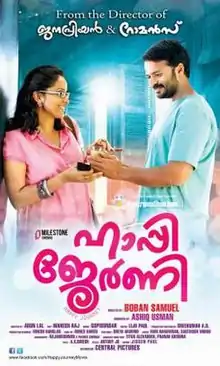 Happy Journey is a 2014 Malayalam drama film written by Arunlal Ramachandran and directed by Boban Samuel, starring Jayasurya, Aparna Gopinath and Lal. The film is produced by Ashiq Usman under the banner of Milestone Cinemas and features music composed by Gopi Sunder,[1] whilst cinematography is handled by Mahesh Raj and is edited by Lijo Paul.[2]