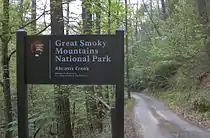 In 1926, conservation groups began buying up land for the creation of the Great Smoky Mountains National Park, which opened in 1934. The park boundary parallels the valley to the south, and includes all of Abrams Creek. A campground and ranger station are now situated at the confluence of Kingfisher Creek and Abrams Creek. Several of the old roads, including the Cooper Road to Cades Cove, the Cane Creek Road to Walland, and the cattle drovers' paths to Gregory Bald, were converted into hiking trails.[10]