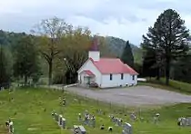 In the 18th century, Happy Valley was likely part of a Cherokee trail system connecting the Overhill towns along the Little Tennessee to the Tuckaleechee Villages in modern Townsend and tribal hunting grounds in Cades Cove.[3] The Overhill town of Chilhowee was situated opposite the mouth of Abrams Creek, and likely succeeded the village of Chalahume reported by Pardo.[4] Abrams Creek was named after Old Abraham of Chilhowee, a prominent Overhill chief in the 1780s.[5]