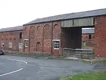 Also listed at Grade II is a barn to the south of the house. This was built at about the same date as the house. It is also constructed in brick, stands on a stone plinth and has a slate roof. The barn has a five-bay north front. The second and fourth bays contain recessed arches and air-vents; the other bays have arched openings, one of which is blocked, above which are pitch holes. The south front is similar, but has square windows in the ground floor of the lateral bays, and its pitch holes are blocked.[3]