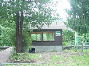 Haratai Station has a single side platform serving a single bi-directional track. There is no longer a station building, but only a waiting room built on the platform. The station is unattended.
