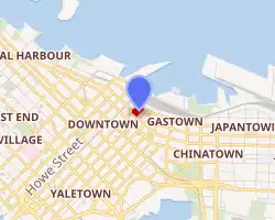 Harbour Centre is located at 555 West Hastings Street in Downtown Vancouver. It is steps away from Waterfront Station, a major multi-modal transit hub which serves as the Downtown Vancouver terminal for various TransLink operations including SeaBus, West Coast Express, SkyTrain, Canada Line and buses. Simon Fraser University operates its downtown Harbour Centre campus in the adjoining Spencer building and houses the Center for Dialogue and Canadas World.