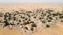 Due to its location in the valley of the Dallol Bosso, the water table is only a few meters below the surface of the earth, which allows the creation of irrigated vegetable gardens. Onion cultivation is a chief source of income for many in the commune,[7] and lettuce, beans, squashes, and tomatoes are also grown. Many of the male residents go to the city or to neighboring Nigeria to find work during the dry season.[8] A market is held in the main town.[9] The state supply center for agricultural resources and materials (CAIMA) maintains a point of sale in the main town.[10]
