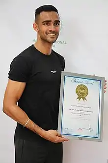 - World Record Holder: Broke the World record for the Highest Standing Jump (One leg) (1.384 m [4 ft 6.5 in]) in Shah Alam, Selangor, Malaysia, on 23 May 2021.[1]
