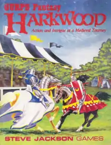 Harkwood is a fantasy campaign setting and scenario designed for use with the GURPS Fantasy rules. It describes the land of Caithness on the world of Yrth, and in particular the Barony and city of Harkwood.[1] Although the players can also make use of the magic rules detailed in GURPS Fantasy, Caithness is an area of low magic, making the use of spells difficult.[2]