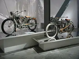 ![]() A Model 7D (right) on display at The Art of the Motorcycle exhibition at Guggenheim Las Vegas in 2003. To the left is a 1915 Iver Johnson Model 15-7. | |
