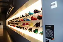 The museum's upper floor exhibits also include the Gas Tank Gallery, formerly part of the Harley-Davidson 100th Anniversary Open Road Tour. The exhibit displays 100 of Harley-Davidson's most memorable tank graphics, spanning 70 years, selected by the company's styling department and reproduced on "Fat Bob" tanks.[11]
